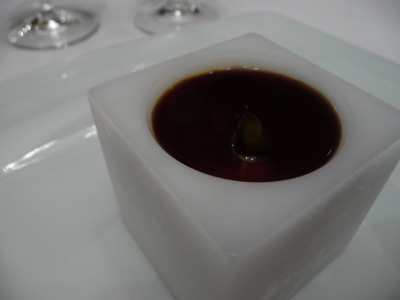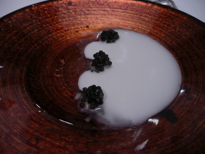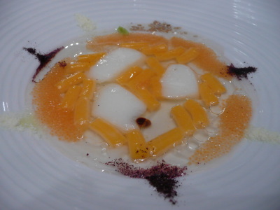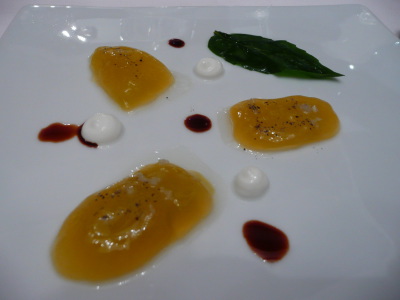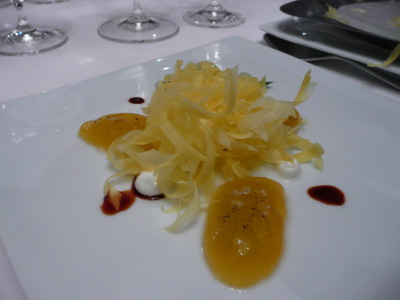 Un fruit inconnu très acide qui attend des spaghettis de gras de foie gras