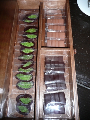 On se dit le repas se termine, nous allons aller vers la terrasse, prendre une infusion locale pour digérer….. mais le festival continue…. boîte de chocolats… gourmandises, moi je ne suis pas surpris…. ça fait bien longtemps que je connais le phénomène Adria…