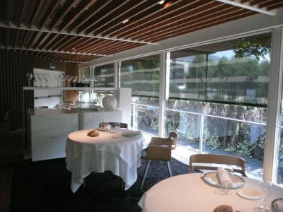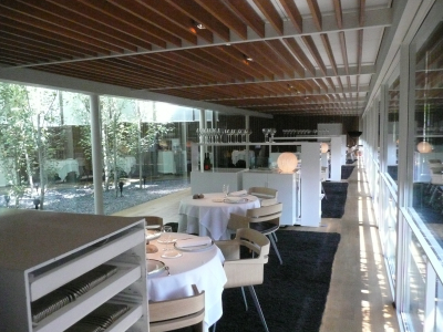 Une fois passé l’entrée, l’on pénètre sur la gauche dans la salle de restaurant, assez particulière, elle s’articule tout autour d’un patio central et carré, les tables sont disposés dont tout le tour de cette cours intérieure vitrée qui laisse passer les rayons de soleil…