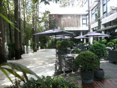 On pénètre donc dans ce lieu avec appréhension, et là, c’est la surprise, on découvre un beau jardin à la japonaise, avec des jets d’eau qui donnent une ambiance très zen.