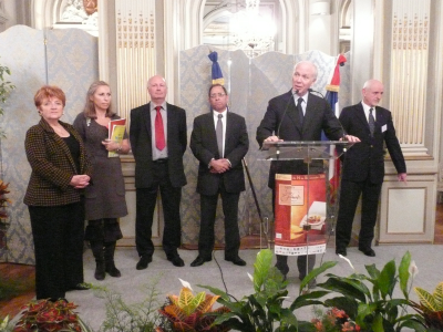 Cérémonie officielle avec le Préfet de Région au micros, Le Maire de Périgueux et les divers représentants du Conseil Général, de l'Agglomération.....