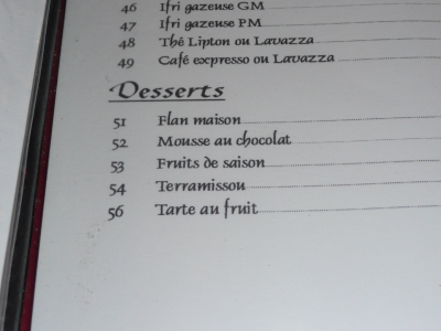 En dessert, un bonne crème caramel au lait entier et aux œufs de la ferme, m’ont ravis, par contre je n’ai pas essayé le « Terramissou « ….. cherchez l’erreur !
