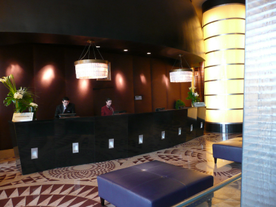 La réception qui vous dirige vers les 250 chambres et suites toutes situées dans les 26 étages que composent l’hôtel.