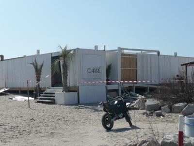 Comme vous pouvez le voir sur les photos, la construction de la plage Carré Blanc sur le sable fin de Villeneuve-les-Maguelone, touche déjà à sa fin.
