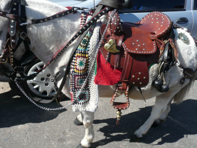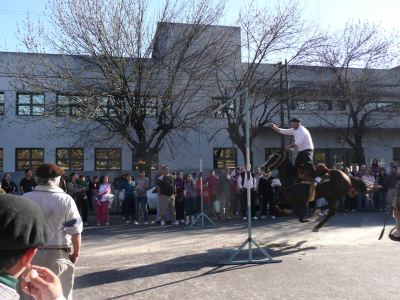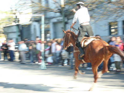 J’ai assisté à un jeux un peu particulier, toute une rue avait été fermée pour laisser place à une sorte de compétition. Les cavaliers et leurs montures devaient partir au galop vers un portique où était suspendue à un câble une bague en argent.