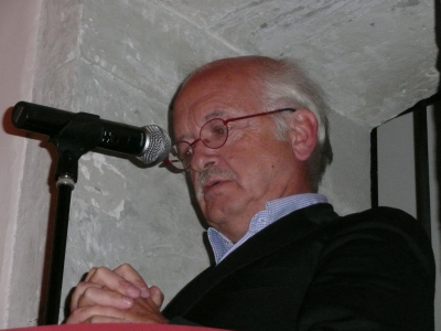 Érik Orsénna dans la Nef, pour dire son amitié à Jacques Glénat.
