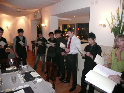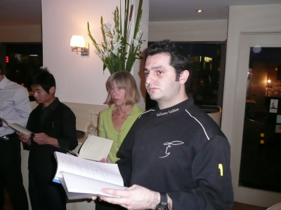 Toute l’équipe était mobilisé pour satisfaire la quarantaine de privilégiés qui remplirent la petite salle du restaurant, et purent apprécier le menu accompagné de la sélection des vins en accord avec les mets.
