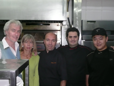 Philippe Faroy et son épouse, Jacques Pourcel, Guillaume Galliot, et Bing Bing le second de cuisine