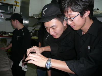 Intéressé par la cuisine française, les jeunes employés Chinois ne manquent pas de prendre les plats en photos. Même si la cuisine française est loin de leur mode de vie, ils se passionnent de plus en plus pour cette nourriture qui viens de l’Occident.