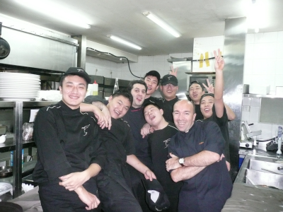 Relâche pour l’équipe de cuisine autour des chefs, après une journée bien occupé !