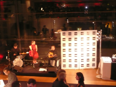 Concert de Jazz devant la baie vitrée dominant la Seine et la Tour Eiffel.