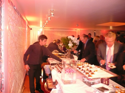 Le cocktail dînatoire démarra rapidement et toute l’équipe en cuisine sous la direction du nouveau Chef Sylvain Ruffenach était mobilisé pour que le service soit rapide et précis. Défilé de mode, chanteuse de Jazz, Champagne Ruinart à volonté, Maison Chapoutier pour les vins, truffes fraîches d’Italie râpée devant les convives, Jambon Jabugo tranché minute, et pyramide de foie gras. Rien ne manquait pour que soit fêté l’excellence.