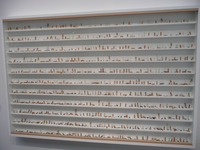 Dog Days, 2008 » Glass, Wood, Paint, cigarettes, cigars, ash » de Damien Hirst un oeuvre dont le prix la rends intouchable…. pourtant il ne s’agit que de mégots écrasés…. Damien Hirst est considéré comme l’artiste le plus riche au monde.