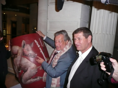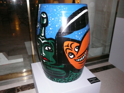 L’hôtel Westin, un Palace qui se situe rue Castiglione à Paris, vous permet donc de pouvoir découvrir une vingtaine de barriques transformées par les artistes, ce lundi soir avait lieu le vernissage ….. très people de l’exposition. Entre jardin d’hiver et Lobby, entre petites bouchées et dégustation des vins du Domaine, on a pu apercevoir, Axelle Laffont, Christian Vadim, Jean-Claude Dreyfus, Françaois Cluzet, François Berléan, Chantal Thomass….et de nombreux journalistes.