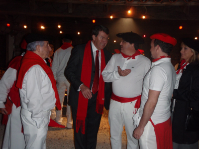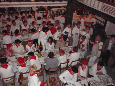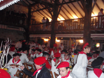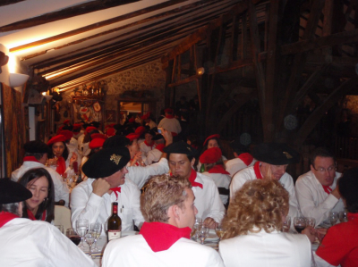 Après une longue journée de travail, heureusement le soir soirée Basques dans une auberge authentique, bérêts traditionnel, foulards et tenues blanches de rigueur pour un fête régionale qui a enchanté tout le monde, mêmes ceux venus de très loin et qui ne connaissent pas les traditions régionales françaises.