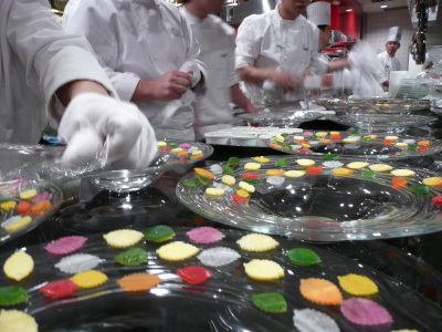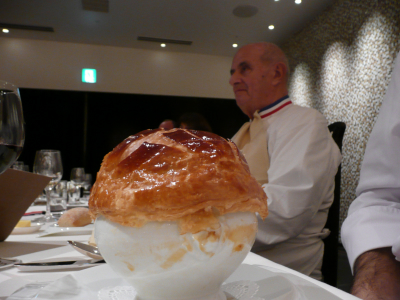 Et bien nous nous servions une soupe VGE, une royale d’oursin, un homard aux truffes d’Alba, un boeuf aux gnocchis à 180 Japonais qui ont déboursés chacun 700 euros pour savourer la cuisine française. Alors décalage horaire, où décalage de concept ?