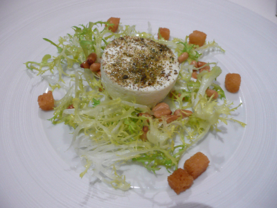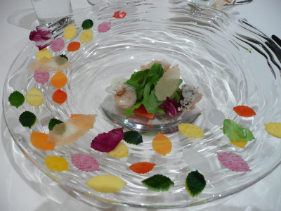 salade de » feuilles mortes de légumes » par le chef Tatsuji Aso, dans la salade le poisson appelé AMADAI, son originalité, c’est qu’on le sert frit avec la peau et les écailles, qui deviennent croustillantes.