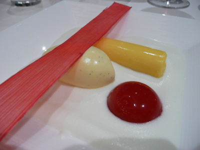 Cannelloni à la vanille, c’était un peu en décalage avec tout le reste, mais super bon. Dessous ça ne se vois pas, mais une fine et croquante lamelle de chocolat blanc, sur du crumble, des dès de chamalow, et des fraises en morceaux…. une histoire super compliqué…
