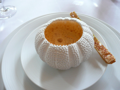 Installé dans le très austère immeuble du Crédit Suisse (ça tombe bien, il est lui aussi d’origine helvétique), sa cuisine ne l’est pas pour autant. Depuis sa grande salle de restaurant aux plafonds très hauts, il a su fidéliser une clientèle amatrice de bonne table et de grandes bouteilles. Colorée, goûteuse, originale et lisible, sa cuisine est enjouée et limpide, jugez plutôt sur le menu du déjeuner.