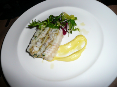 Une terrine pressée d’aile de raie et de pommes de terre, servie avec un aïoli. Superbe !