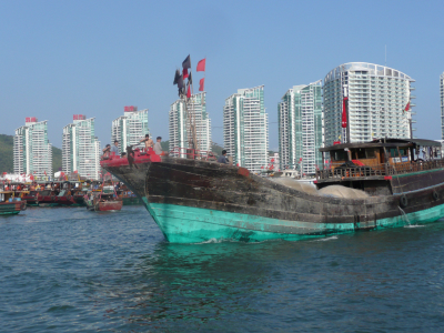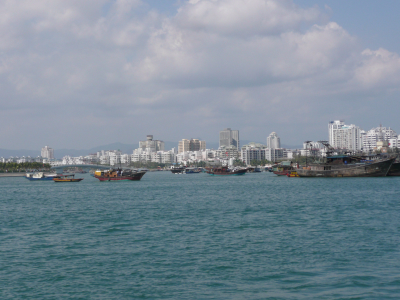 L’île de Hainan est située à l’extrême sud de la Chine, deux villes principales y sont implantées, Haikou au Nord et Sanya au Sud. Le climat est tropical au sud de l’île, en moyenne 25 degrés à l’année, 20 degrés l’hiver. Les villes sont en plein développement, et malheureusement on n’échappe pas à la construction d’immeubles et de tours qui dominent maintenant la baie de Sanya.