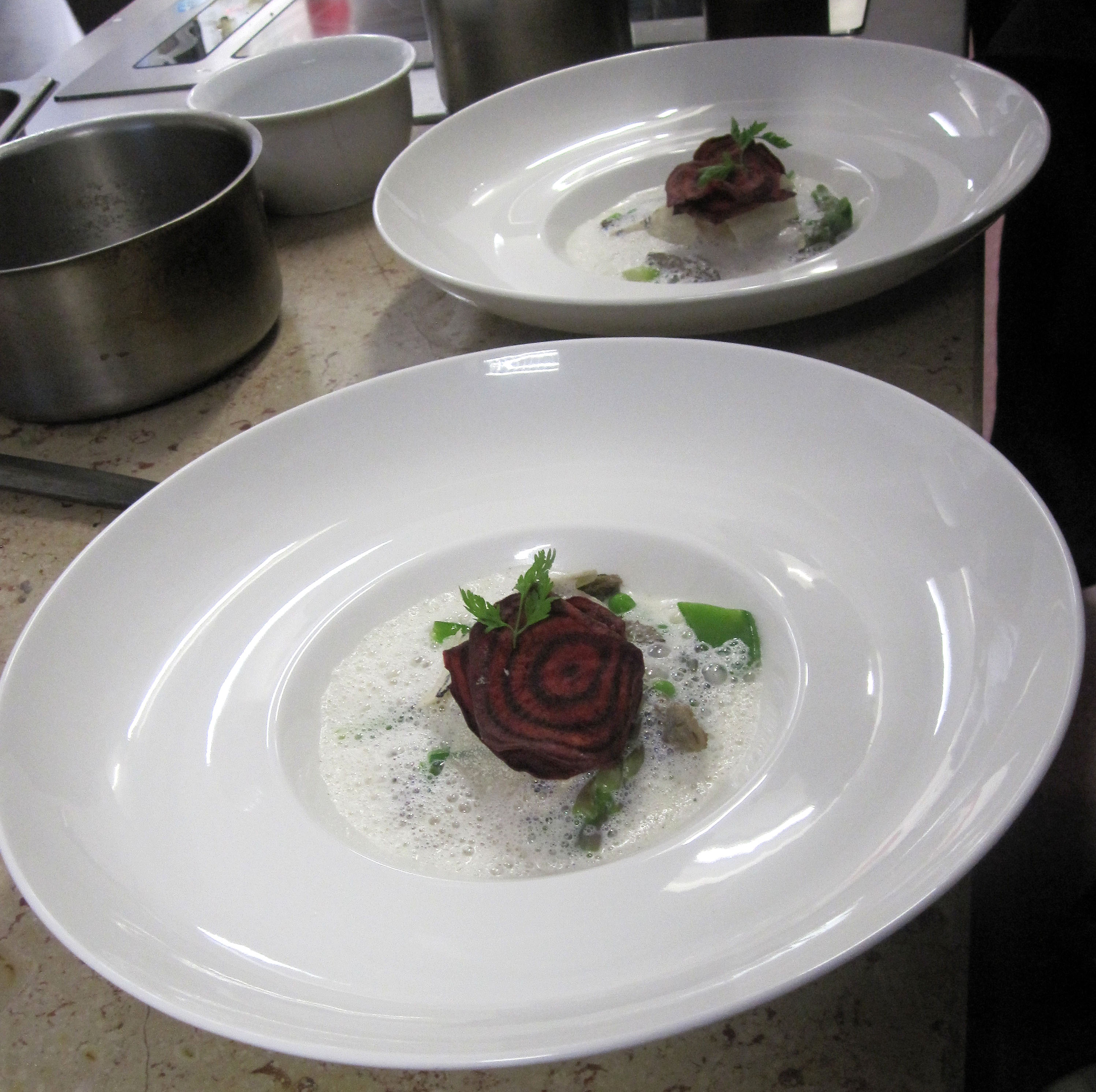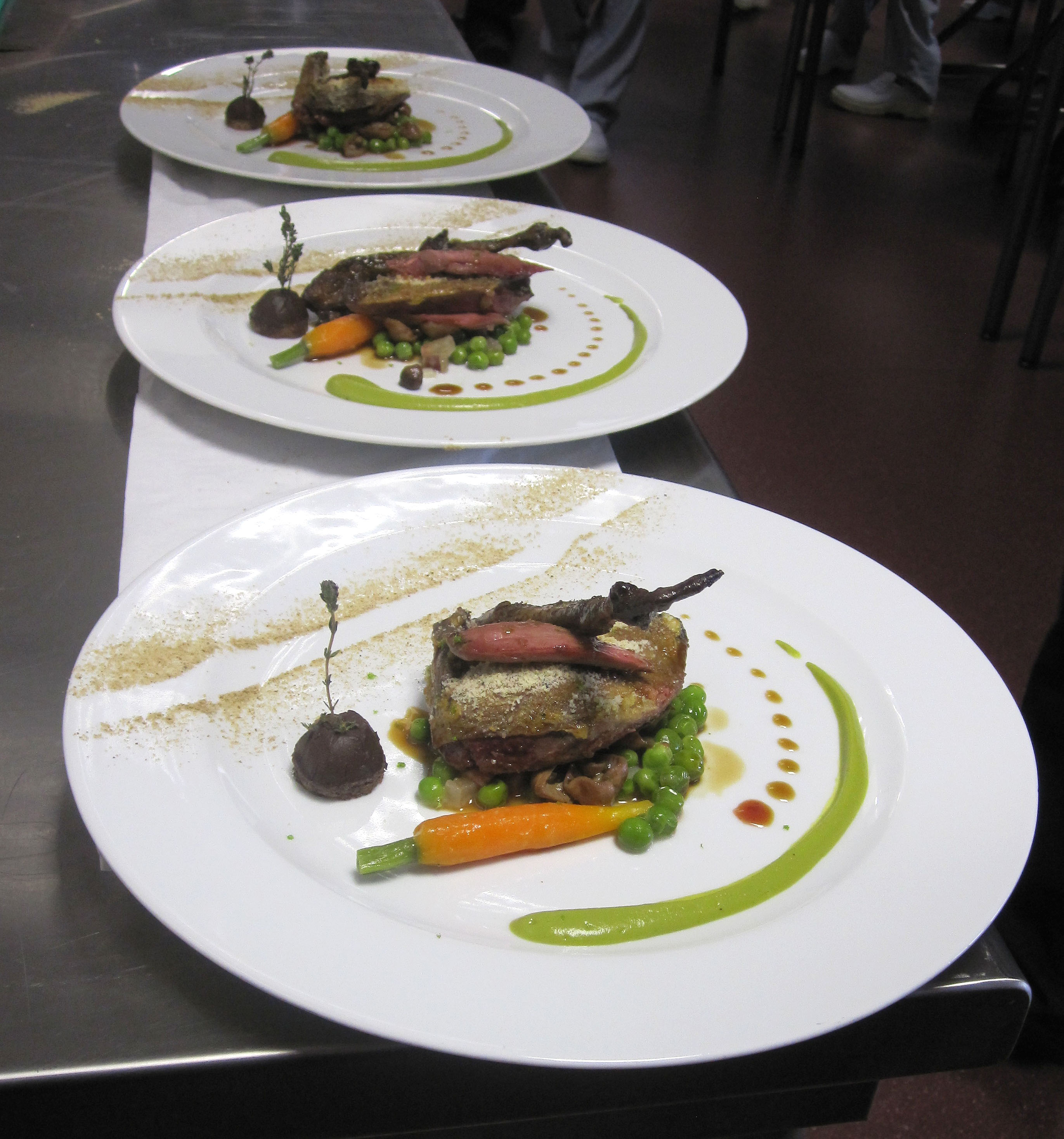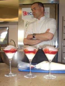(*) La démonstration de Régis Marcon porta sur le plat préparé par Emmanuel Leininger, apprenti de l’ICF Hôtellerie Restauration, qui a participé aux finales nationales du concours des « Chefs en Or », le 3 mai dernier à Paris. Emmanuel a assisté Régis Marcon lors de la démonstration.