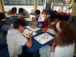 Avant de commencer l’atelier, les enfants ont participé à un concours de dessins sur le thème des USA et fruits et légumes, pour gagner un repas dans un établissement des chefs, en compagnie des parents de l’heureux gagnant.