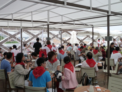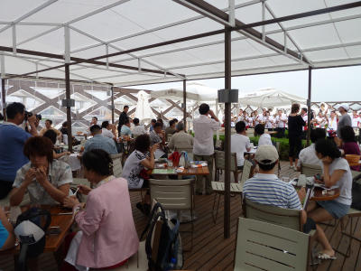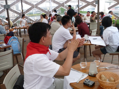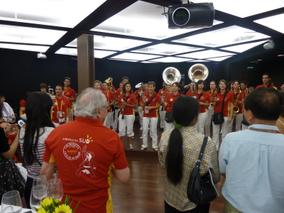 Et c’est rapidement que tout le monde rentre dans l’ambiance et tape dans ses mains. Une façon assez originale de se sentir un peu français pour quelques minutes. En tout cas, un souvenir que les Chinois présents ne seront pas prêts d’oublier, vu le nombre de photos prises, et les » Olé et Hola … » qui ont retenti sur les toits du Pavillon France…