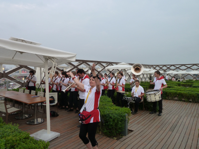 Ils animent tous les jours le » Pavillon France » sur divers sites et notamment tous les soirs sur la terrasse du restaurant 6Sens des frères Pourcel. Autant dire que la clientèle chinoise, surprise au départ par ces musiques populaires, se prend vite au jeu et à l’ambiance.