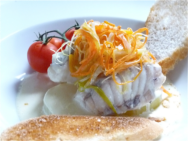 BOURRIDE DE LOTTE, POMMES FONDANTES ET JULIENNE DE LEGUMES