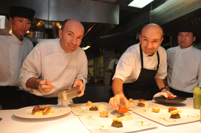 Les Chefs Jacques & Laurent Pourcel et leur partenaire Olivier Château étaient pour quelques jours tous les trois à Shanghai pour lancer » Maison Pourcel » qui après une semaine de training est enfin prête pour recevoir ses premiers clients.