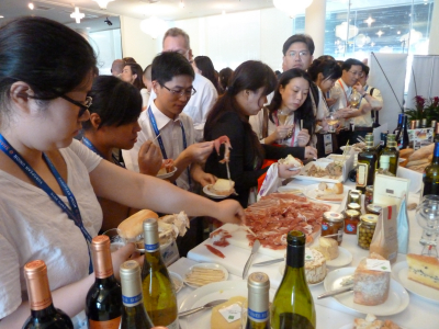 Fromages de Roquefort et Laguiole étaient présentés à tous les Chinois présents sur la manifestation et ayant participé aux débats, le tout accompagné de pain français.