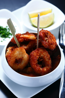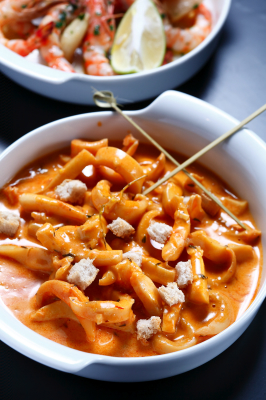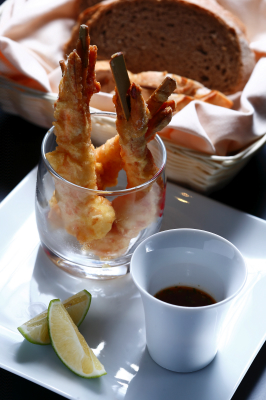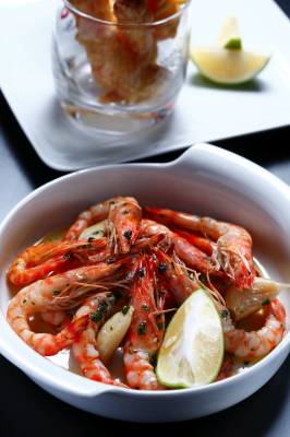 Poêlée de crevettes à la minute au naturel, crème de persil plat.
