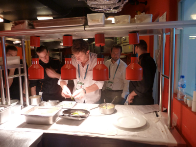 C’est sous l’oeil attentif du chef Christophe Demeur, responsable du restaurant 6Sens sur la pavillon France que Sylvain Ruffenach a réalisé la démonstration de ses plats qui ont composé le menu servi pendant dix jours à tous les visiteurs qui faisaient une halte pour manger.
