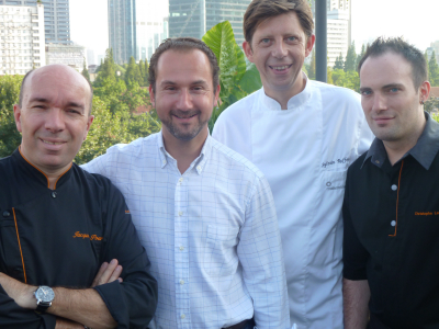 Le chef Jacques Pourcel, Bruno Franck, les chefs Sylvain Ruffenach de Maison Blanche Paris, et Christophe Lerouy de Maison Pourcel à Shanghai.
