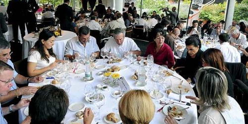 Autour de Madame le Maire de Montpellier, Hélène Mandroux, les journalistes Henri-Jean Servat, Jean-François Mesplède, Dominique Homs Vailhé, Marc de Passerio, chef de cuisine. Étaient présents aussi à la table Guillaume Crouzet et Éric Roux.