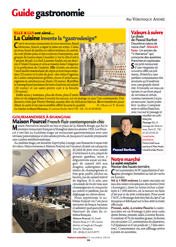 La presse française parle cette semaine de Maison Pourcel… Le Madame Figaro en fait une des 4 escales pour VIP Voyageurs de la semaine dans » TAMTAMCITY « … et Valeurs Actuelles, l’adresse gourmandise à Shanghai !