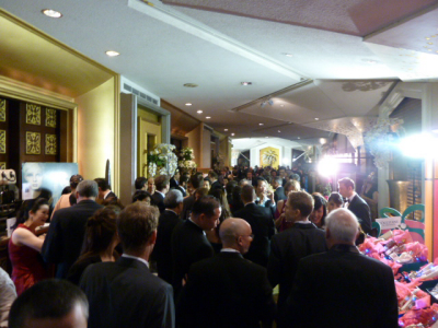 La soirée a commencé par l’accueil des invités dans le hall de l’hôtel Dusit Thani où était servi un cocktail autour des stands des grandes marques françaises, comme par exemple, L’Oréal, L’Occitane, Longchamp, ou les champagnes Mumm… Photo officielle de tous les invités avant d’être reçus par le magazine Harper’s Bazaar qui présentait sa version iPad.