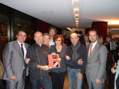 C’était l’occasion de présenter ce livre édité chez Glénat aux journalistes et aux libraires, mais aussi de présenter les équipes qui l’ont réalisé, notamment Donald, le jeune photographe hollandais, Thomas, le graphiste, Véronique André qui a écrit les texte sur les produits et bien sûr en présence des chefs.