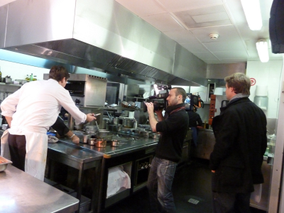 L’occasion pour les équipes de télévision de pénétrer dans les cuisines du restaurant Maison Blanche et d’y découvrir l’activité lors d’un service. L’équipe de France 5 profita également de rencontrer Sylvain Ruffenach, chef des cuisines de Maison Blanche Paris, et de lui demander son sentiment sur sa collaboration avec les frères Pourcel.