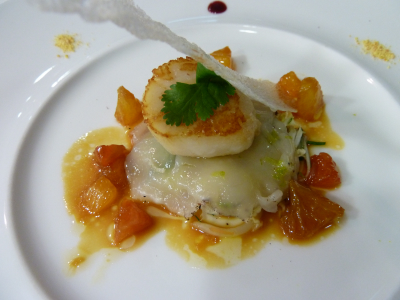 La noix de Saint-Jacques en marinade d’agrumes aux saveurs d’Asie.