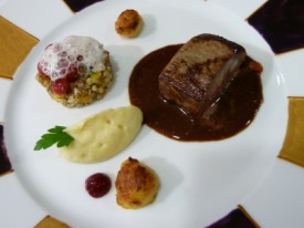 La noisette de cuissot de chevreuil rôtie, sarrasin au potiron, gnocchis de pommes de terre, jus de céleri réglisse.