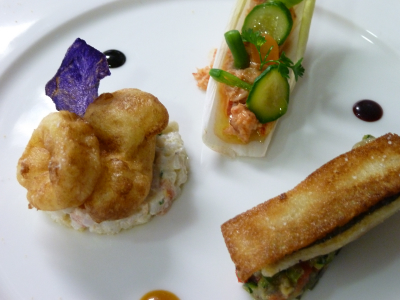 dans une feuille d’endive, la salade de crustacés aux petits légumes,