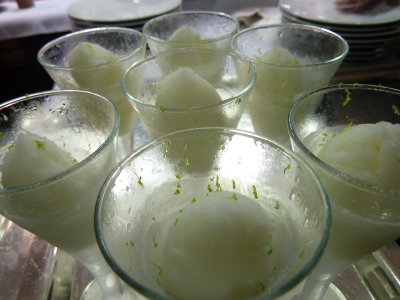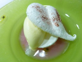 La fraîcheur de litchi au jus de passion, meringue glacée.