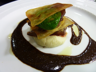 Le filet de pigeon rôti, sa cuisse confite, mille-feuille de pomme de terre,