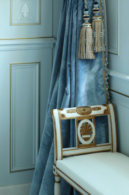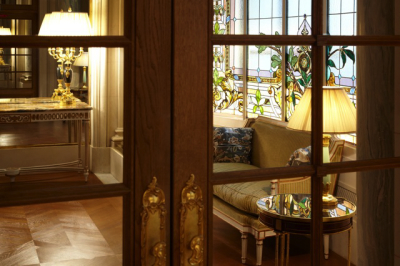 Partout se ressent cette association subtile de l’art de vivre à la française et du savoir recevoir asiatique. Dans les anciens appartements de Roland Bonaparte, la salle de réception aux dorures XVIIIe, qui ne sont pas sans rappeler la galerie des Glaces à Versailles, et la salle à manger aux dominantes vertes, hommage à l’Empereur dont la sculpture à cheval trône sur la cheminée… La suite impériale, qui n’offre pas moins de 270 m2 est sans nul doute la « pièce maîtresse » de l’ouvrage ! Velours bleu signé Pierre Frey, soieries brodées signées Rubelli, tableaux XVIIIe chinés chez des antiquaires… Le groupe Shangri-La dégage systématiquement un budget spécifique pour la partie « œuvre d’art » ce qui a permis à l’architecte de tout mettre en œuvre pour retrouver le style et l’ambiance créative de l’époque. Et cela se ressent partout, dans les espaces ouverts comme dans les chambres ou suites qui ont chacune leur spécificité décorative et architecturale.