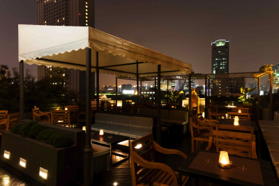 Le chef Christophe Lerouy veille à la destinée de la cuisine, alors que Harry Vieujot dirige et fait vivre cette maison française unique en Chine. Une maison telle une habitation privée où le bien être, le confort, l’atmosphère vous font penser à ces demeures des grandes familles bourgeoises. Depuis les terrasses, vous pouvez vous poser pour admirer pendant de longues heures ces toits et ces immeubles qui découpent la ville, tel un jeu de construction que l’on n’ose plus bouger, de peur d’en fragiliser l’équilibre.