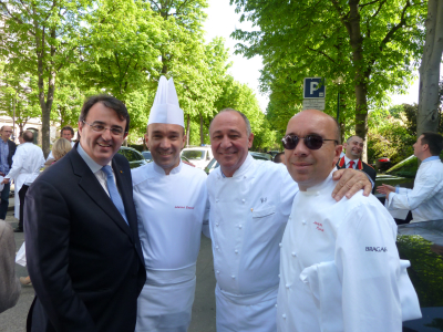 Autour de Jaume Tapiès, président des Relais & Châteaux et de Marc Haeberlin, président des Grandes Tables du Monde, de grands noms de la gastronomie ont pu profiter de Paris et de ses merveilleuses terrasses, d’autant que Paris brillait sous un soleil estival.