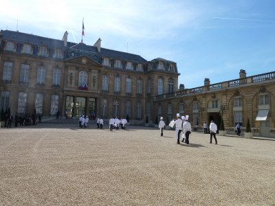 Dès 14h30, les chefs revêtirent leurs tenues de cuisine pour aller rejoindre à pied le Palais de l’Élysée, situé tout proche, où devait se dérouler la photo réunissant tous les chefs, sur le perron de la si célèbre résidence du chef d’Etat français, symbole du pouvoir.