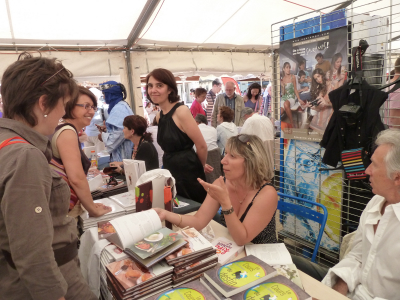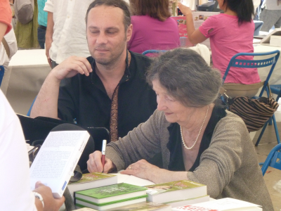 Tiens, l’écrivain Marie Rouanet que nous apprécions beaucoup, et qui s’est souvent exercée à écrire sur la cuisine et la vie quotidienne, fort occupée à signer ses ouvrages.